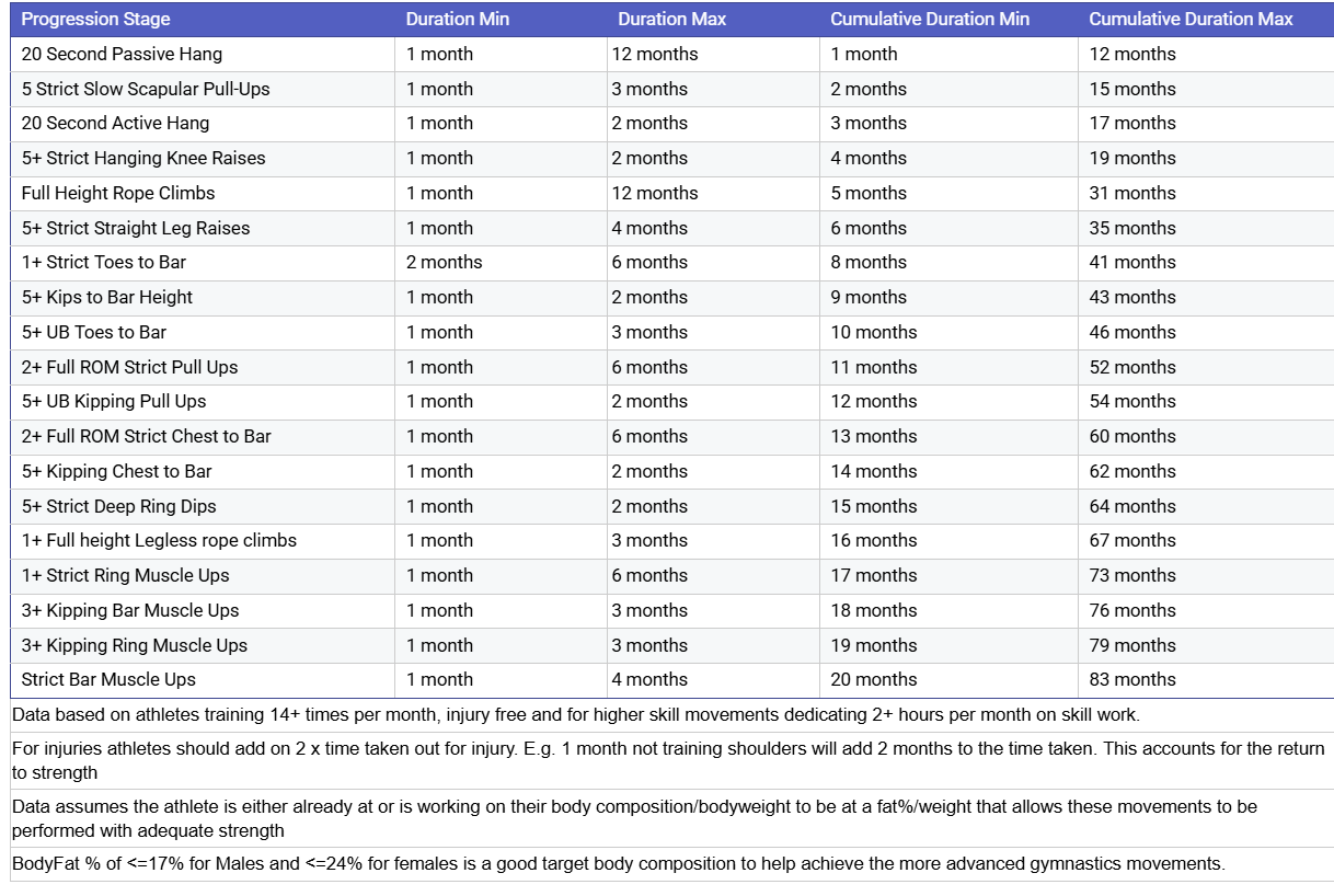 - 2+ Strict Pull-Ups: Buckle up for this one, folks, because we're looking at a range of 1 year all the way to upwards of five years.